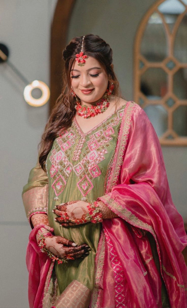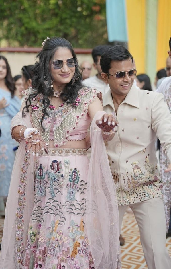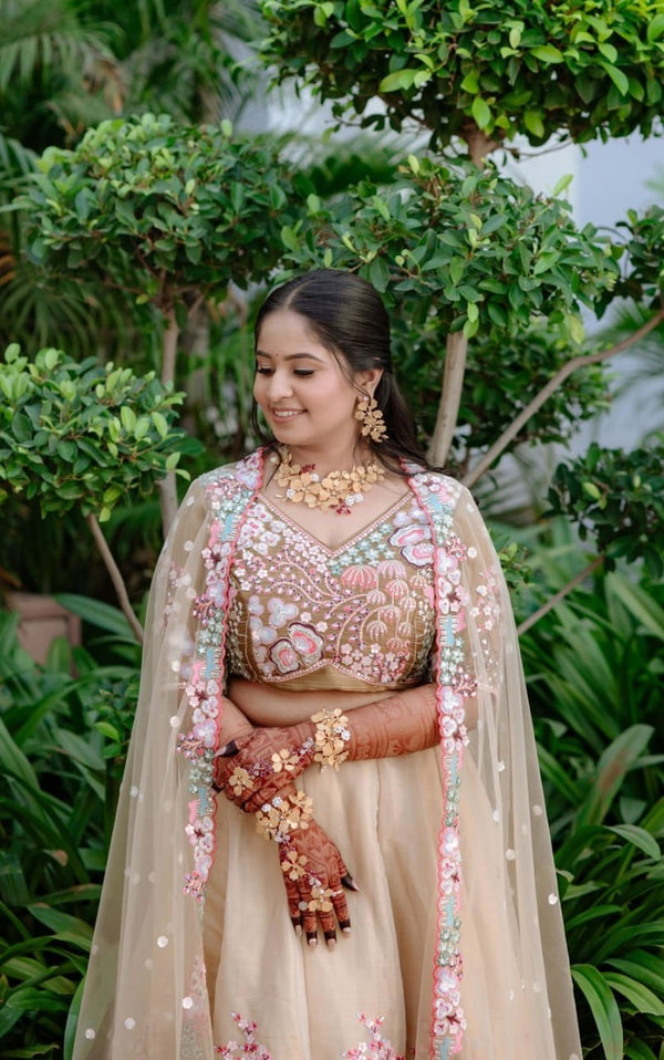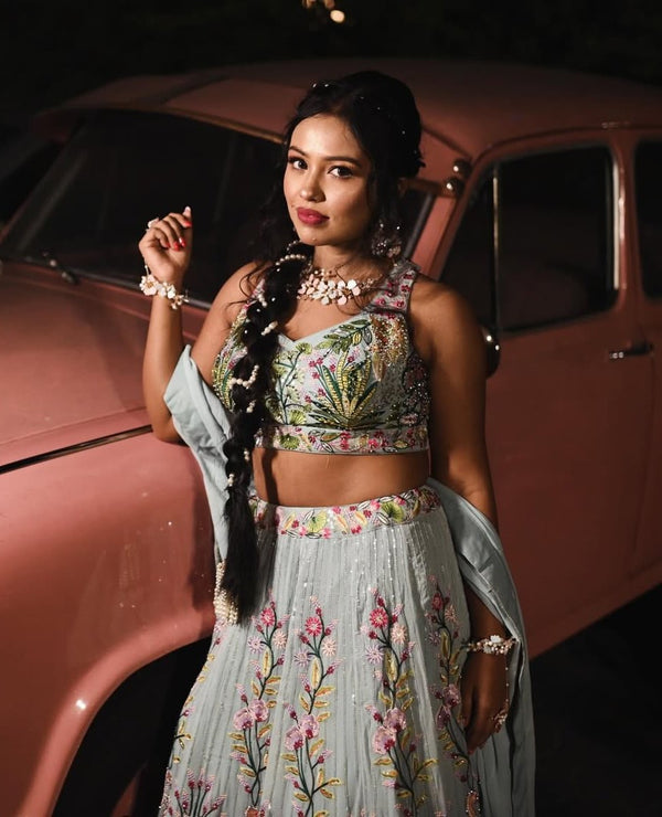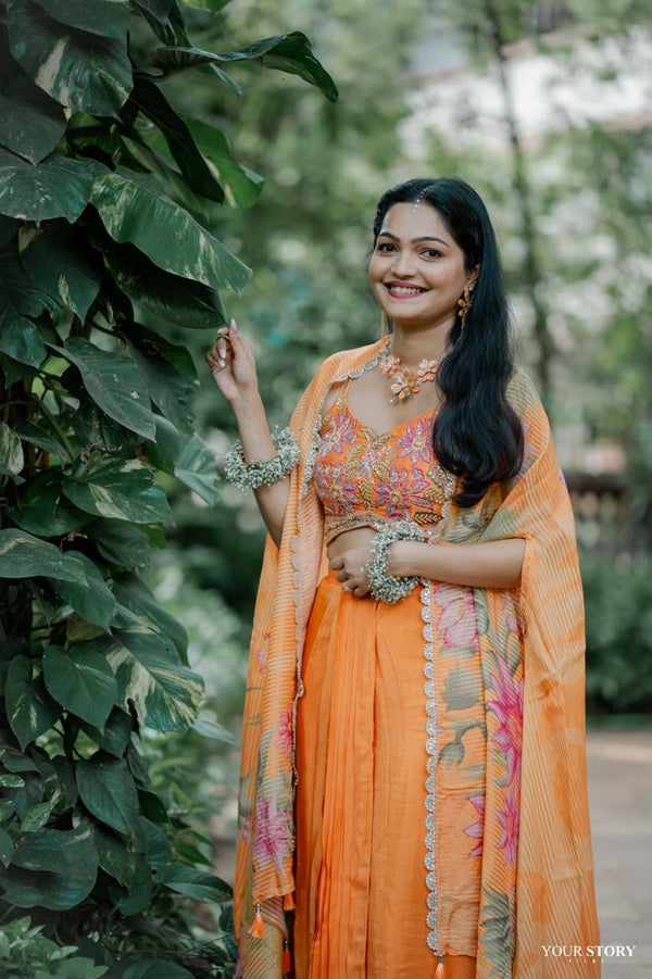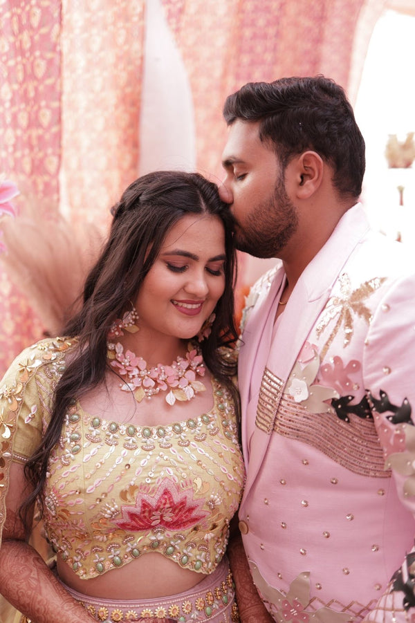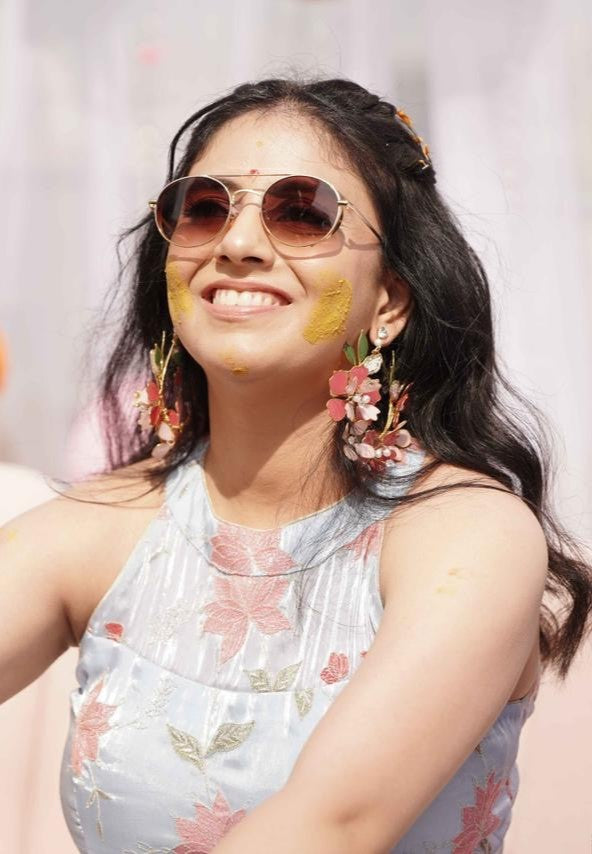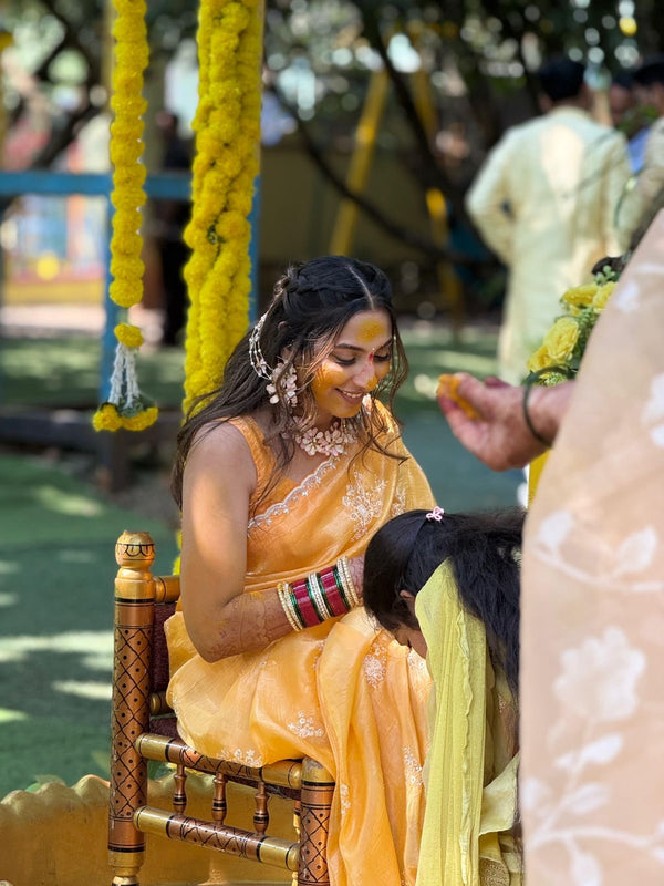 Our floral jewellery pieces styled seamlessly for a soft, romantic haldi celebration.