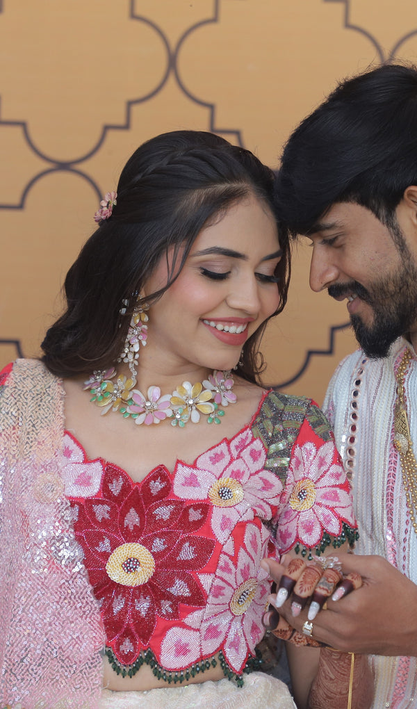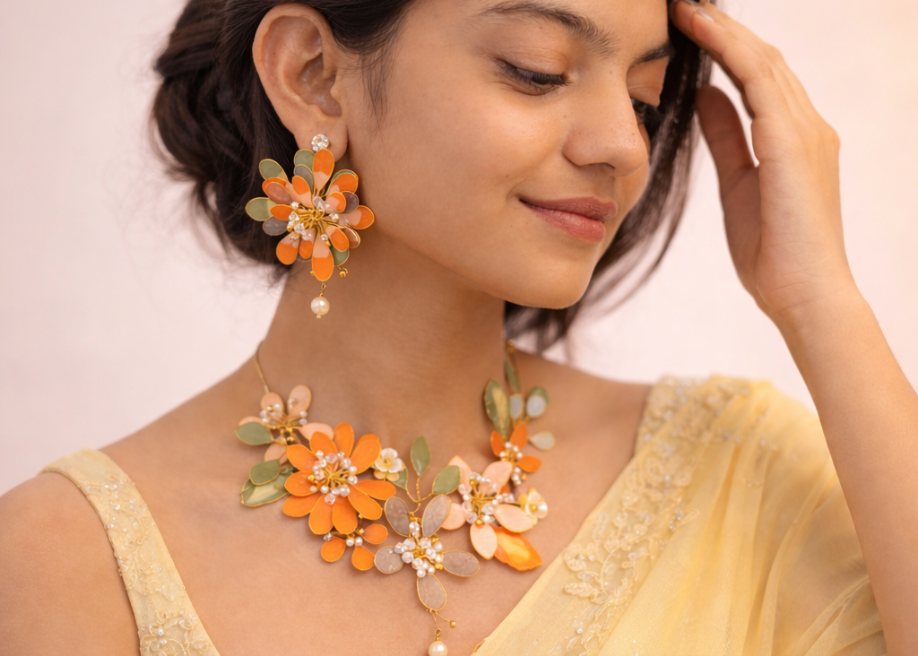 Florals elevated beyond ornamentation. A refined jewellery set designed for discerning celebrations.