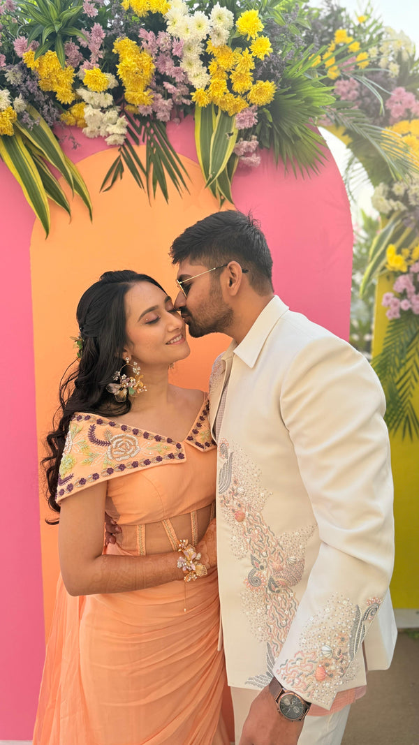 Where haute detailing meets ceremonial elegance. A floral set created for moments of distinction.