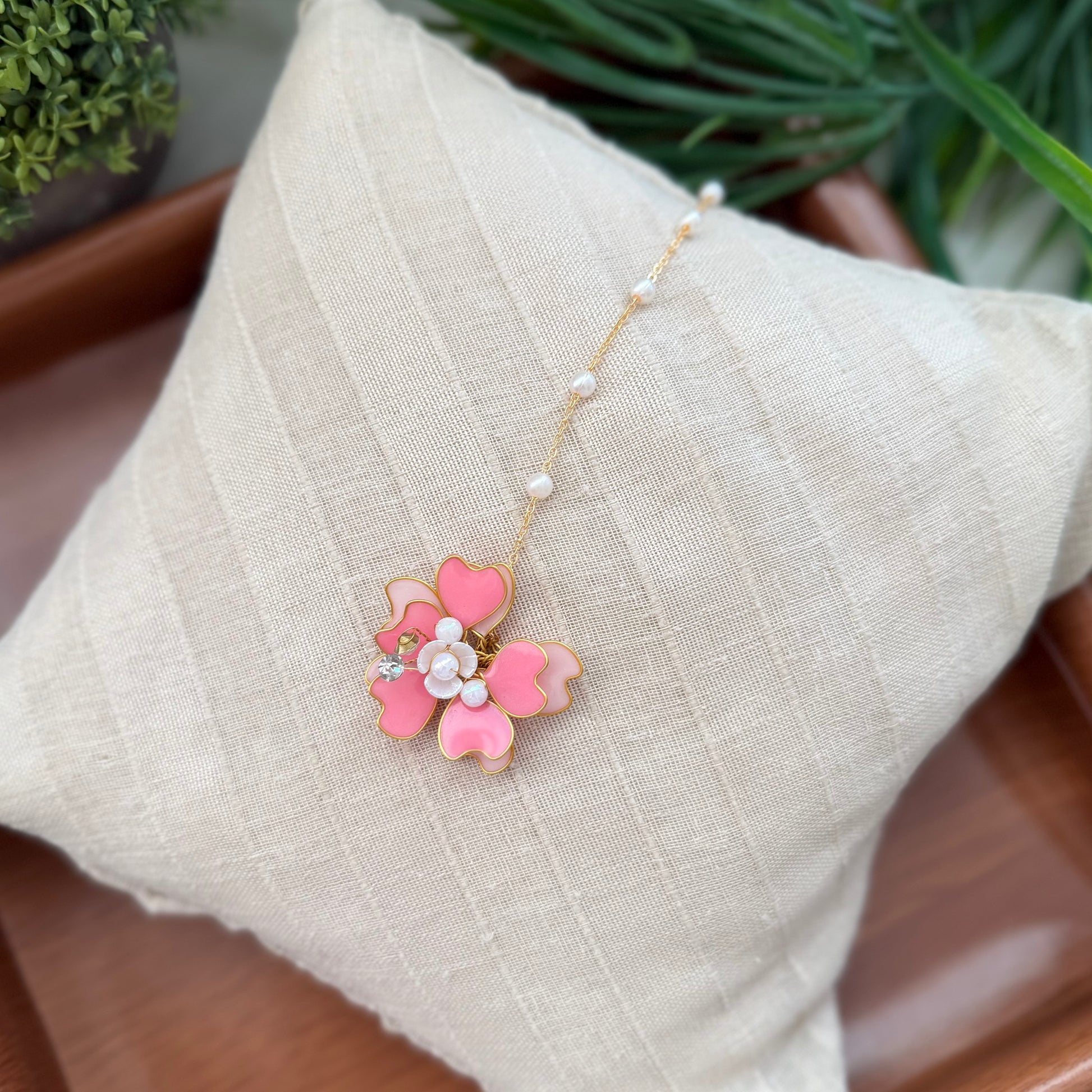 The Amirah Maang Tikka exudes subtle glamour with its delicate design and gentle shimmer. Sleek, elegant, and effortlessly charming, it’s perfect for brides, bridesmaids, or minimal festive styling — Amirah is modern, soft, and playfully graceful.