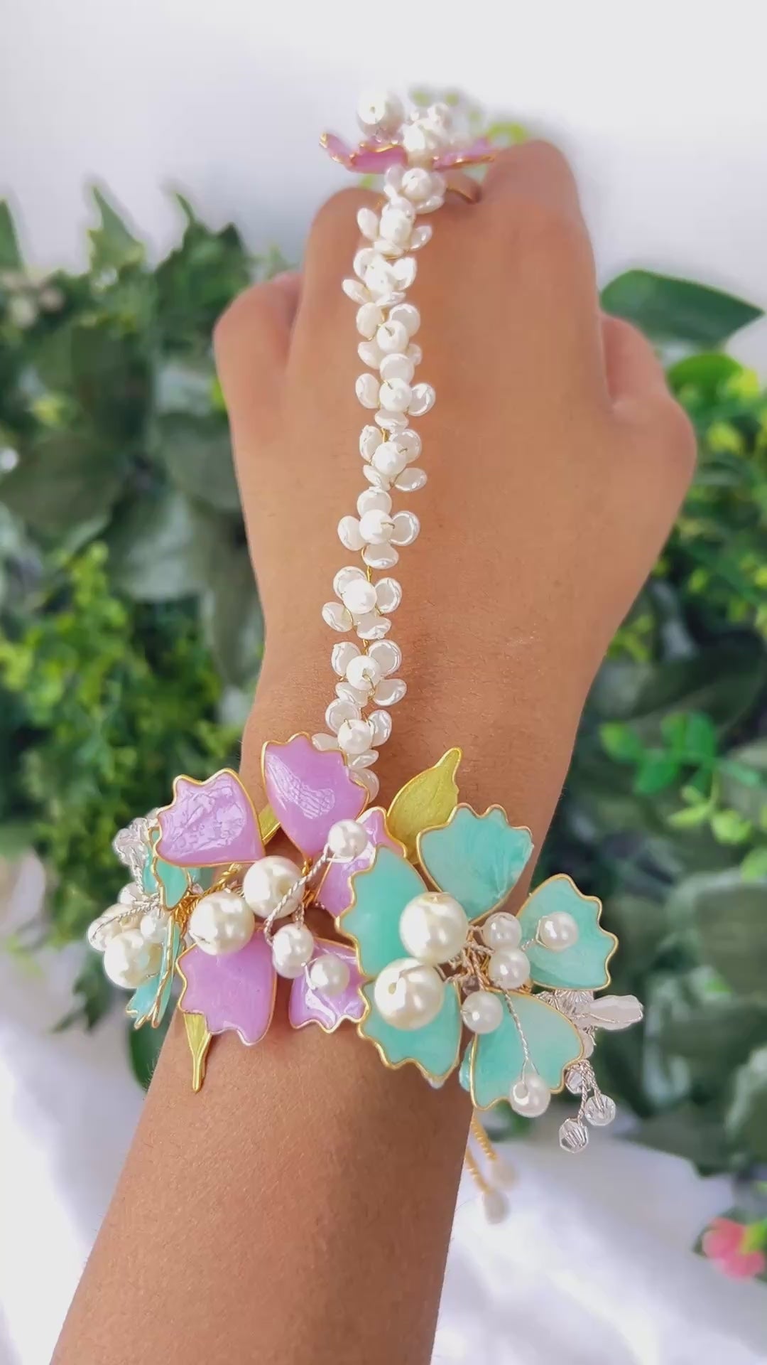 The Aria Hand Harness is a poetic fusion of minimalism and charm. Featuring sleek golden lines, dainty embellishments, and a fluid silhouette, it drapes the hand with quiet elegance.