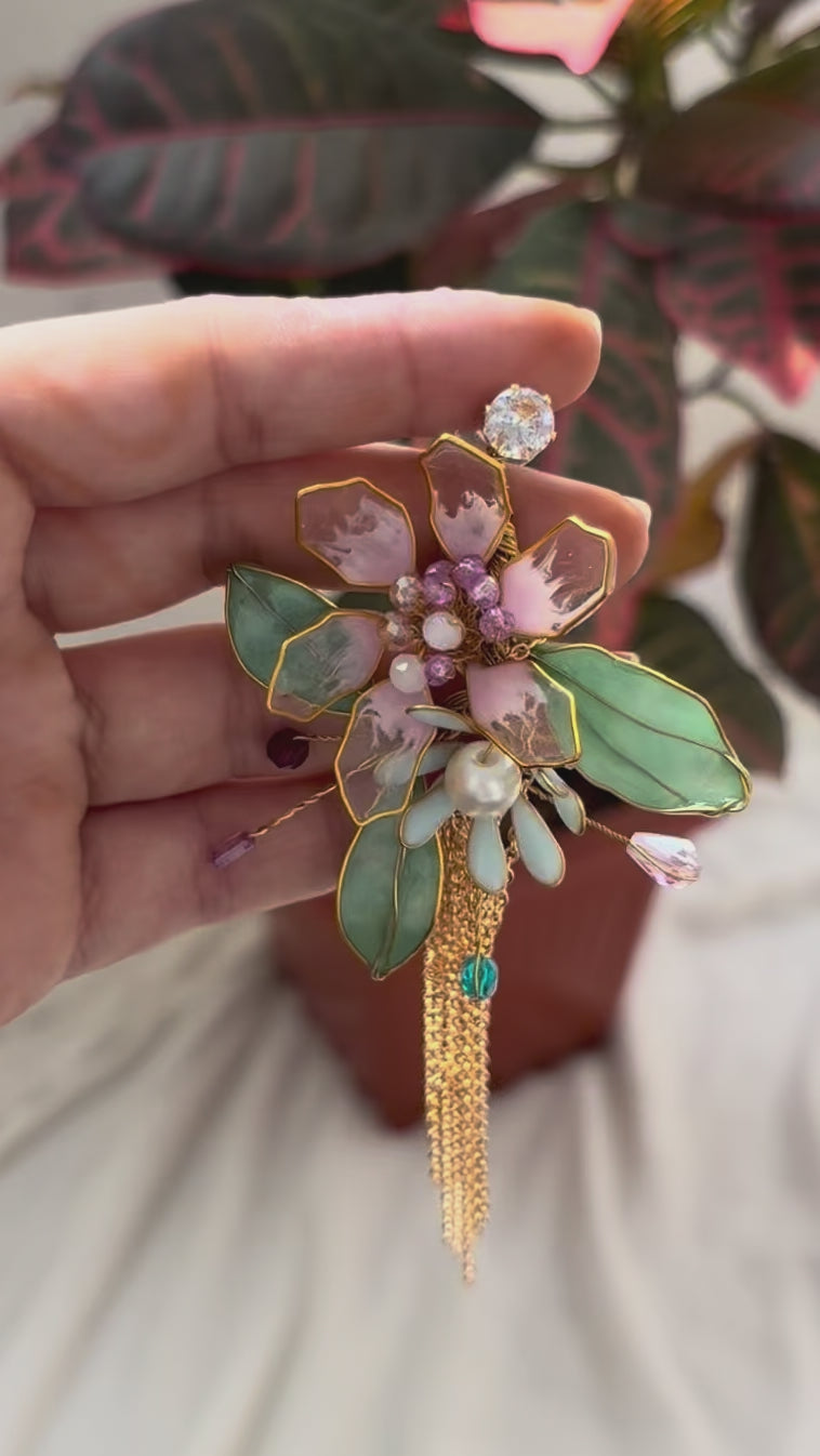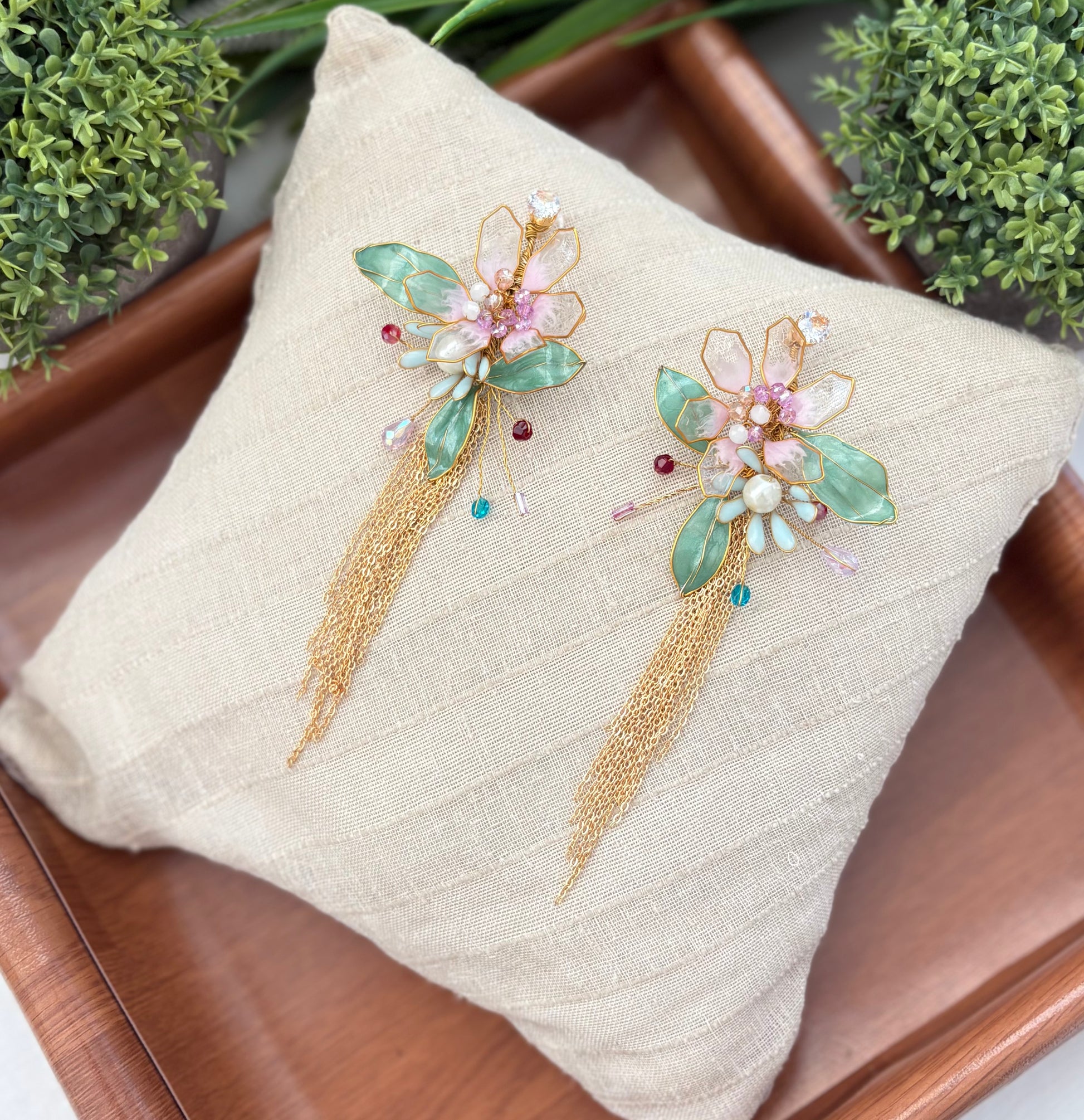 The Aurelle Earrings embody soft sophistication with a hint of golden allure. Designed with delicate resin florals and polished accents, they add an elegant glow to any ensemble.