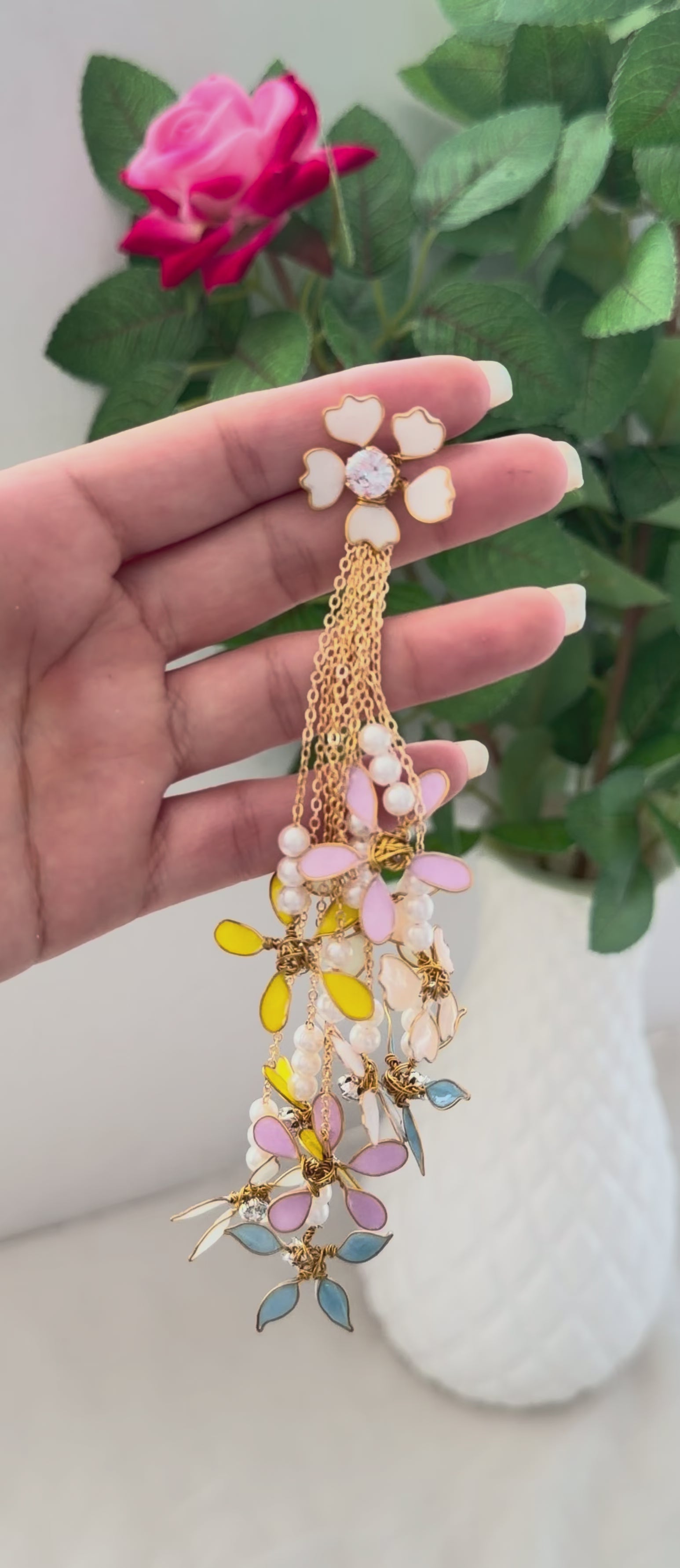 The Gia Earrings are a radiant blend of sophistication and charm. Handcrafted with delicate resin florals and luminous golden accents, each pair brings a graceful glow that elevates any look.