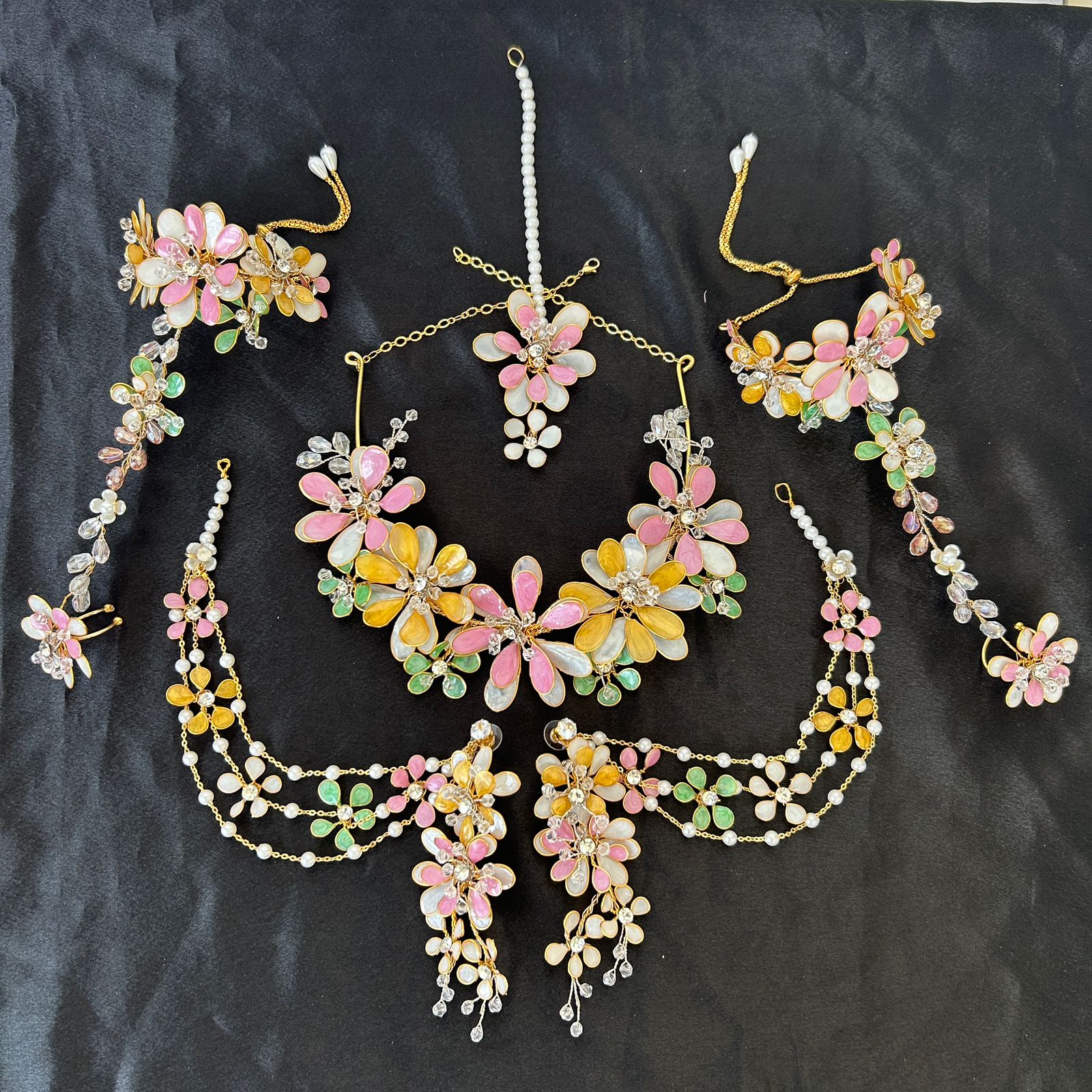 - Net Quantity: 1 pair of Earrings + 1 Necklace + 2 Hand Harness + 1 Maangtikka