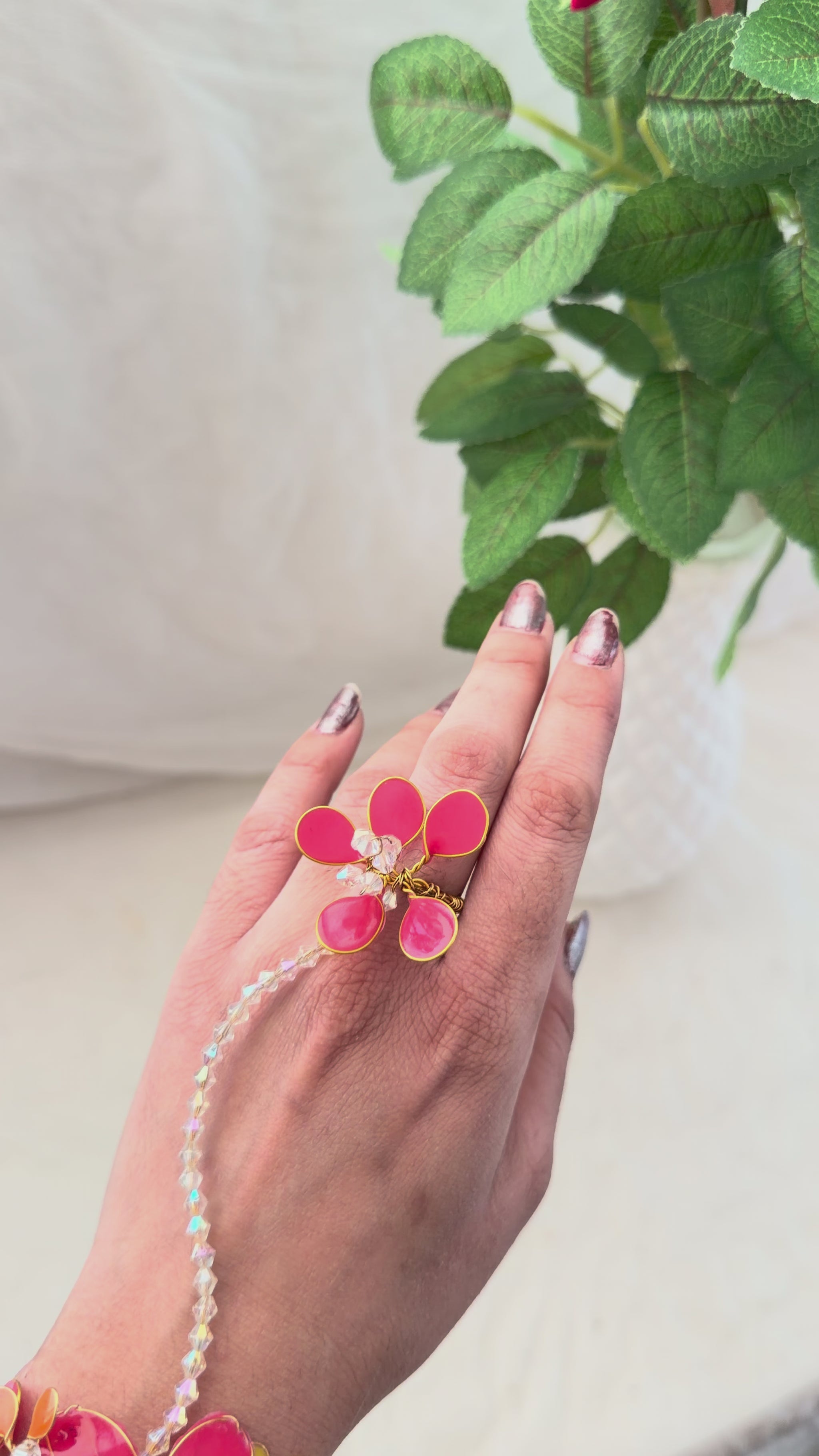 The Layla Hand Harness is a playful twist on modern elegance. With dainty details, fluid golden lines, and a touch of shimmer, it adds light, youthful charm to your every move.