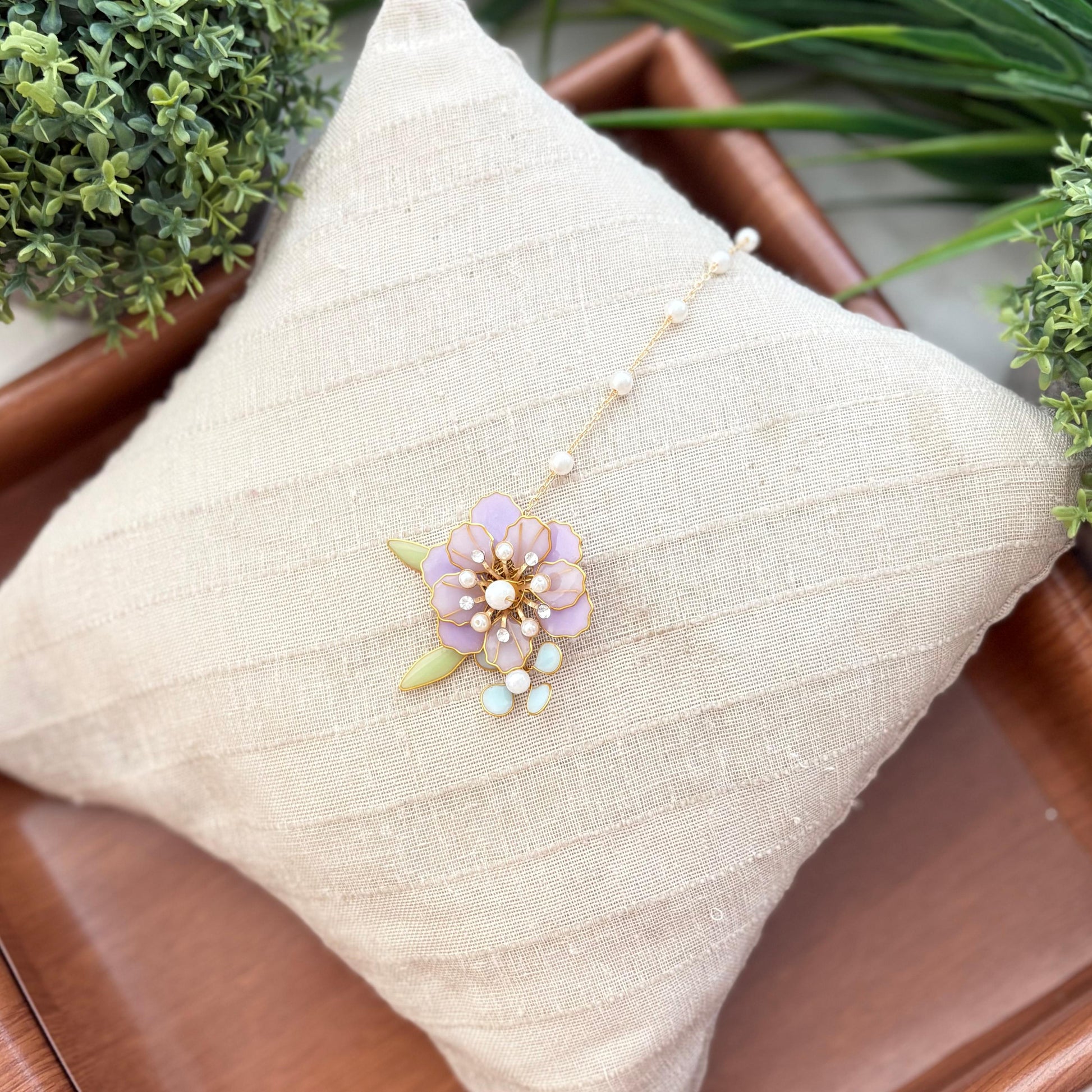 The Valora Maang Tikka is effortlessly chic, with delicate detailing and a subtle shine. Its refined design and gentle elegance make it perfect for brides, bridesmaids, or minimal festive looks — Alicia is graceful, modern, and playfully sophisticated.