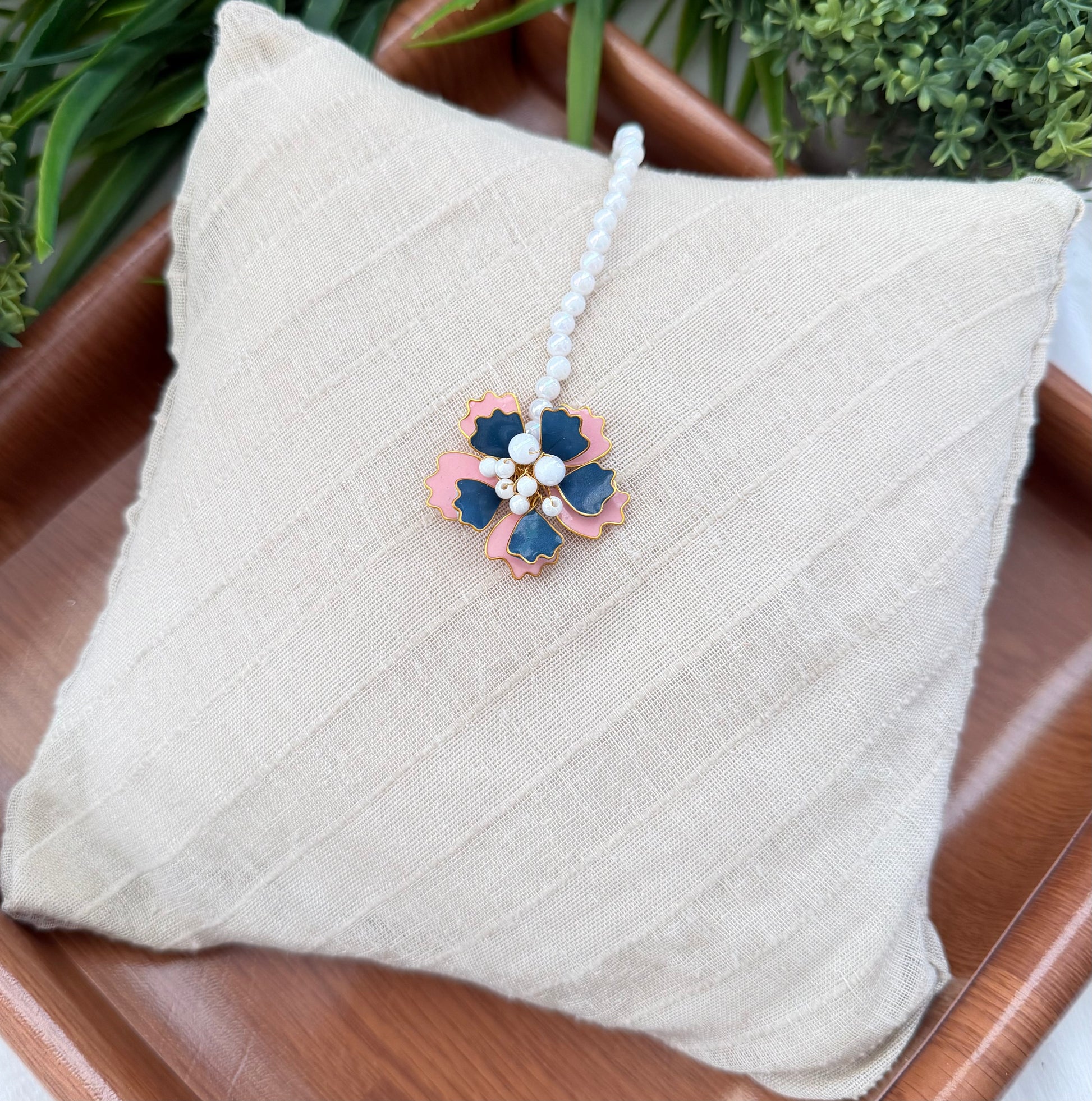 The Veloria Maang Tikka is a blend of delicate artistry and modern sophistication. With graceful lines, fine golden accents, and a soft luminous finish, it adds an understated yet captivating glow to your traditional ensemble.Perfect for contemporary brides, elegant festivities, or refined statement looks — Veloria is graceful, polished, and effortlessly enchanting.