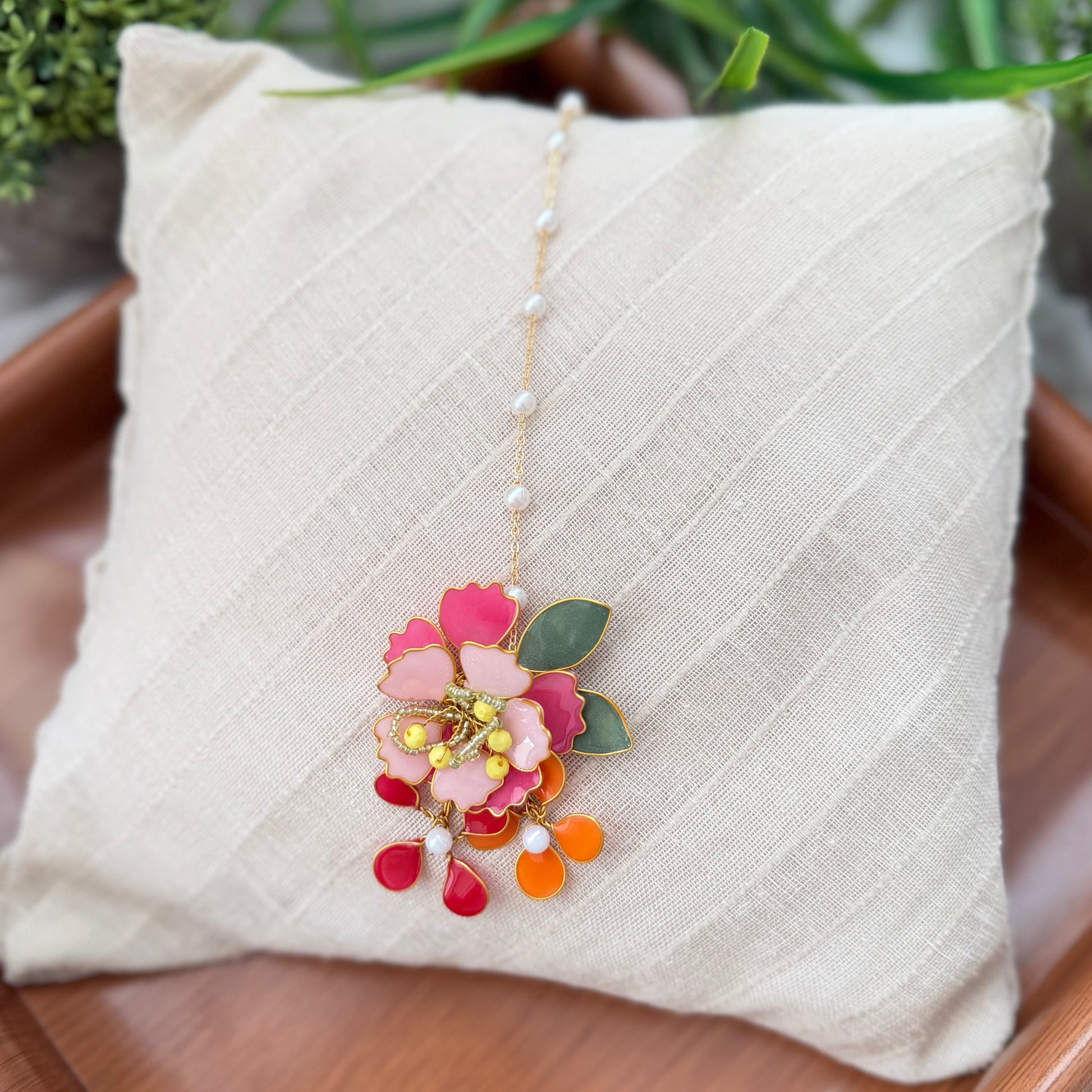 The Alicia Maang Tikka is effortlessly chic, with delicate detailing and a subtle shine. Its refined design and gentle elegance make it perfect for brides, bridesmaids, or minimal festive looks — Alicia is graceful, modern, and playfully sophisticated.